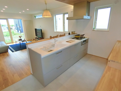 - 人工大理石ワークトップのカウンターキッチン