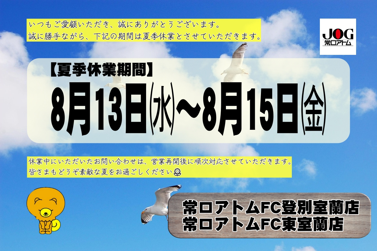 8月13日㈬~15日㈮はお盆休みとなります