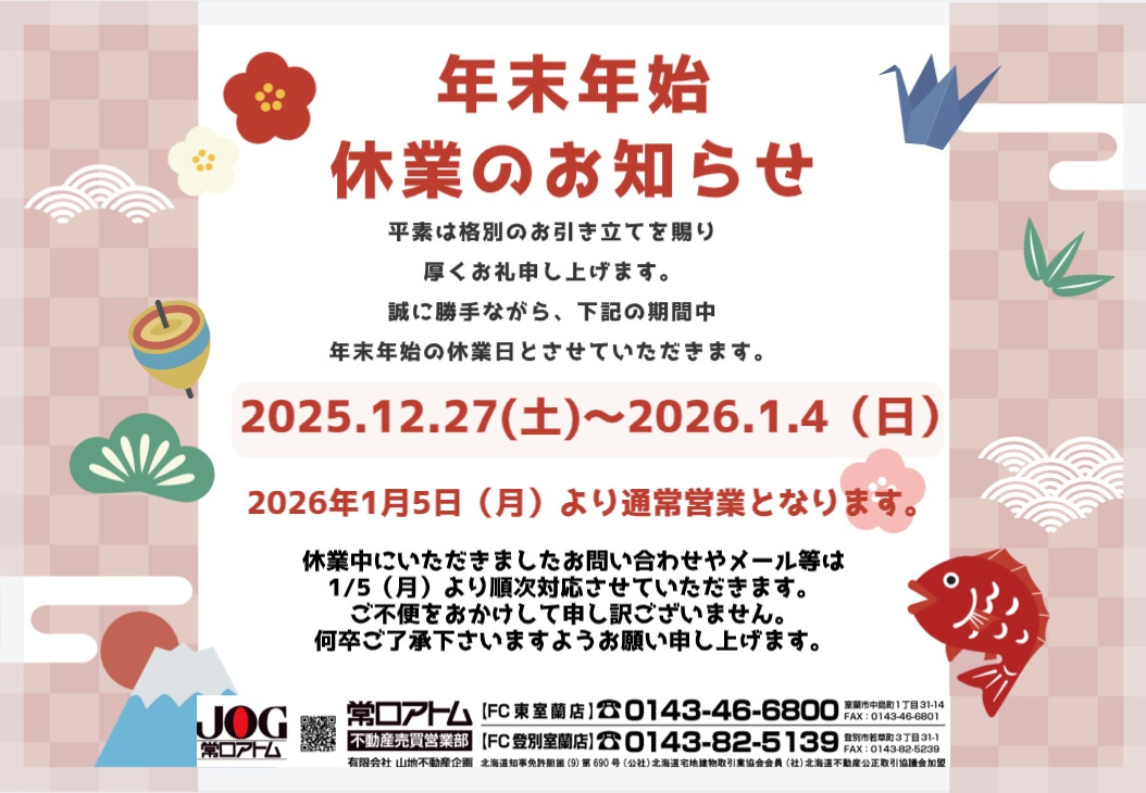 山地不動産企画は本日が仕事納めとなりました。